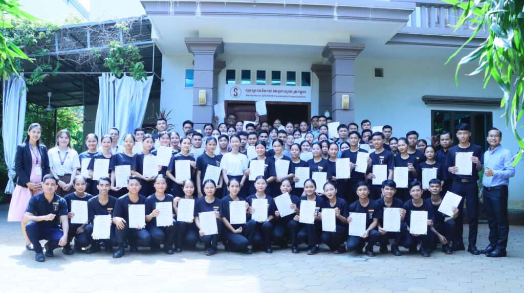 On 30 July, 78 students successfully completed their English for Hospitality training under the TDSO – Teacher Development Support Organisation and SPOONS Cambodia Organization partnership.