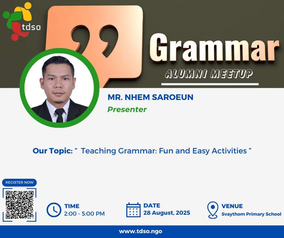 Join us for a practical and interactive workshop with Mr. Nhem Saroeun, where you’ll explore simple and enjoyable ways to design grammar exercises that engage your learners.