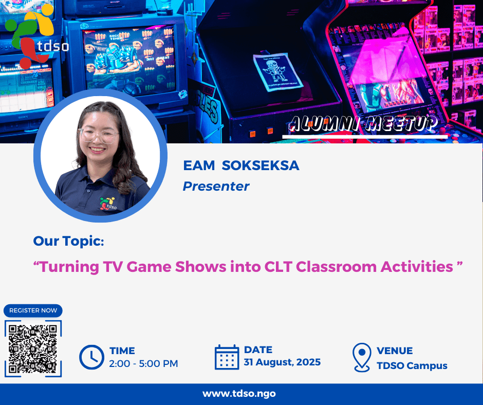 Join us for a fun and practical workshop with Eam Sokseksa, where you’ll discover how to transform popular TV game shows into engaging classroom activities that boost communication, interaction, and learning.