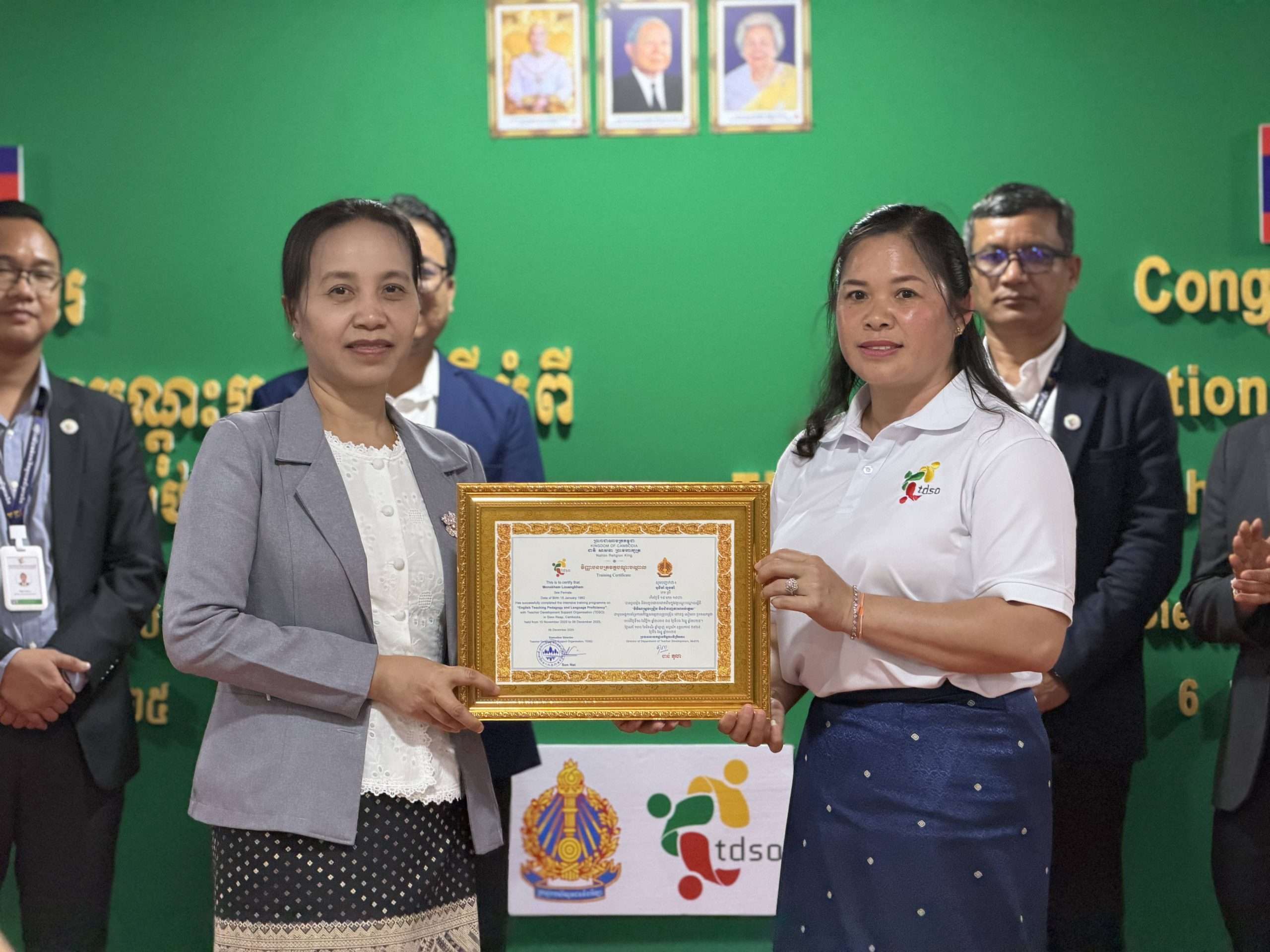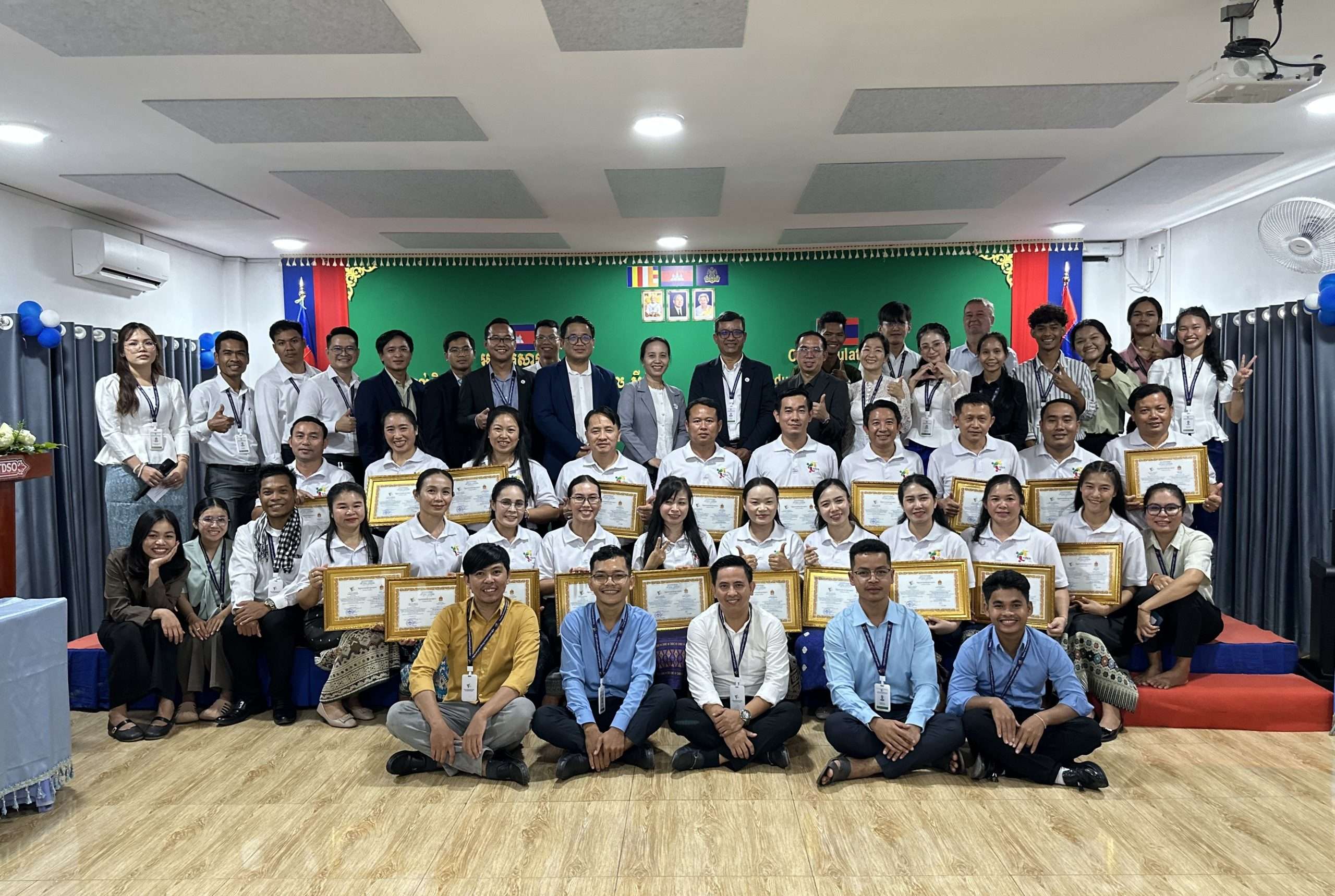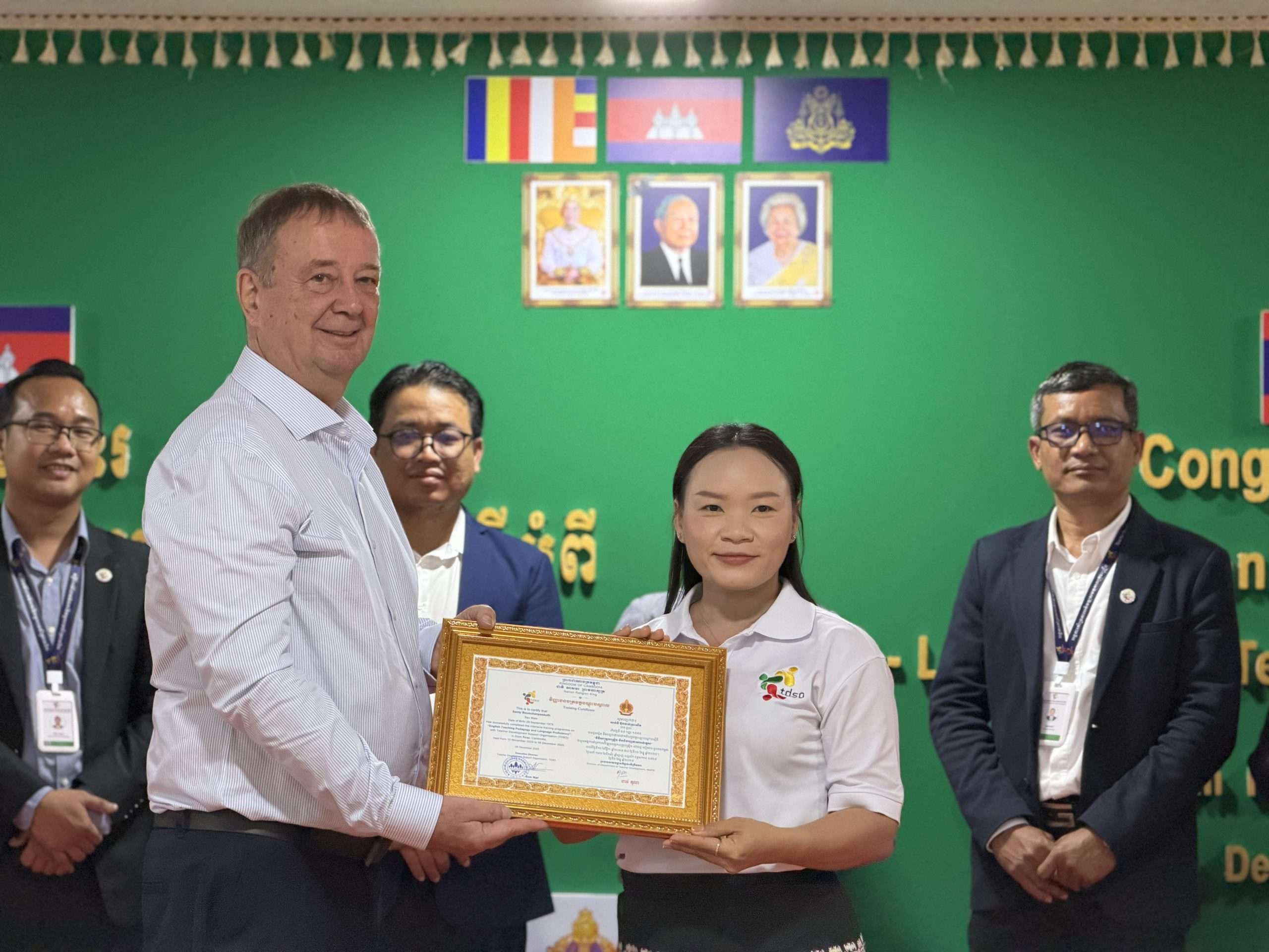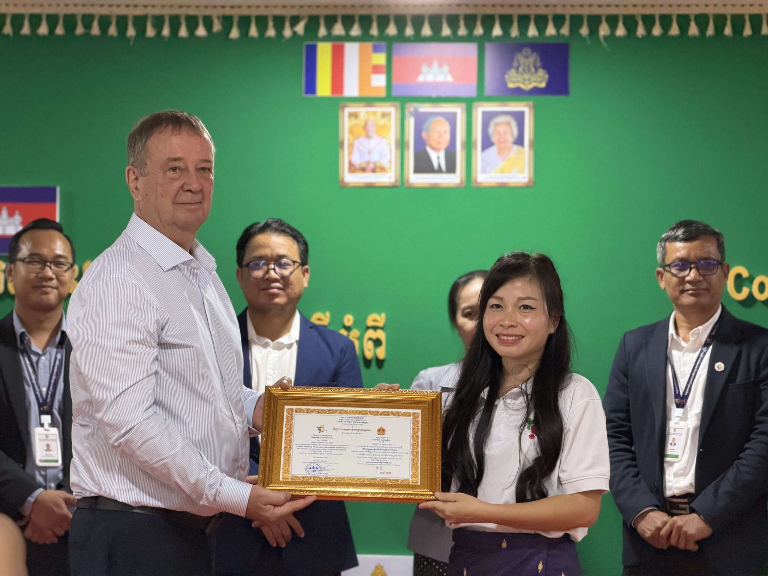 The graduation was attended by Mr Chan Tola, Director of the Department of Teacher Development (នាយកដ្ឋានកិច្ចការវិក្រឹតការ TDD) at Cambodia’s Ministry of Education (MoEYS Cambodia), and Mrs Xayalinkkham Khamphat, Deputy Director of DTE (Department of Teacher Education) MOES, Lao PDR, which clearly signals that this work is becoming embedded in regional educational infrastructure rather than operating alongside it.