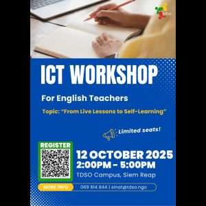 Ready to transform your teaching with the power of ICT? Join Mr. Kan Sokhit for a hands-on workshop where you’ll discover how to blend live and self-paced learning to create flexible and engaging lessons for your students! Date: Sunday, 12 October 2025 Time: 2:00 PM – 5:00 PM Venue: TDSO Campus,