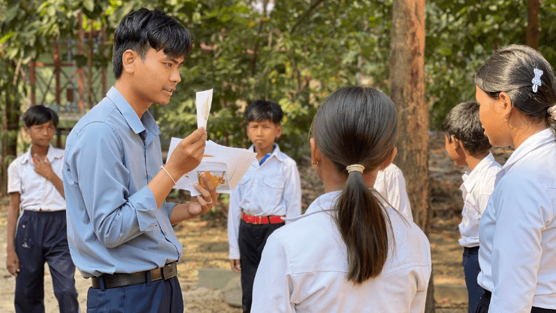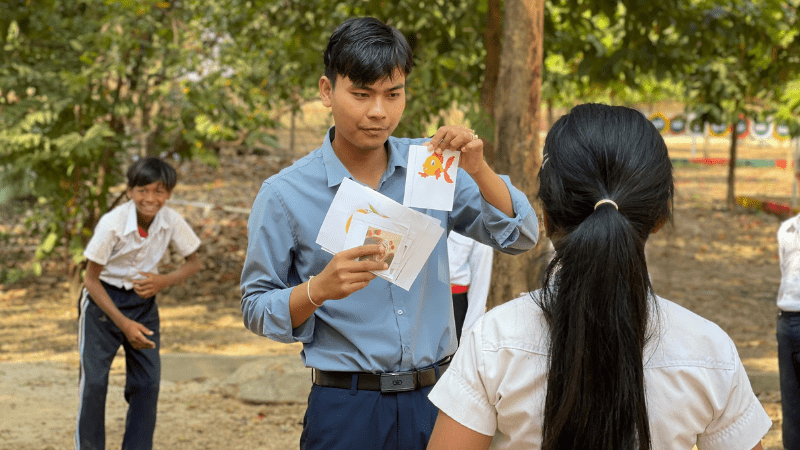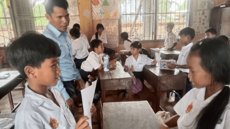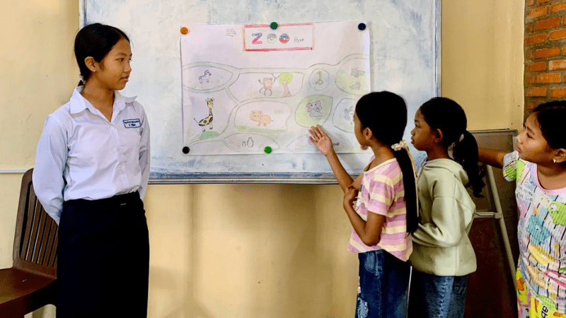 TDSO’s methodology addresses these challenges through systematic support. Teachers learn to scaffold the transition: initially using some Khmer to ensure understanding, then gradually increasing English exposure as students develop confidence. As one teacher explained: “At first, I did not really use all English for teaching. I also used some Khmer to ensure that they could understand. Later, I tried to expose them to the English language little by little till they were able to understand my instructions.”