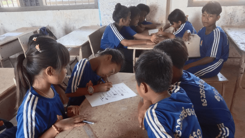 Structured interaction. Teachers increasingly used pair and group work not only for speaking English but also to solve mathematics problems, discuss science concepts, and brainstorm ideas in Khmer.