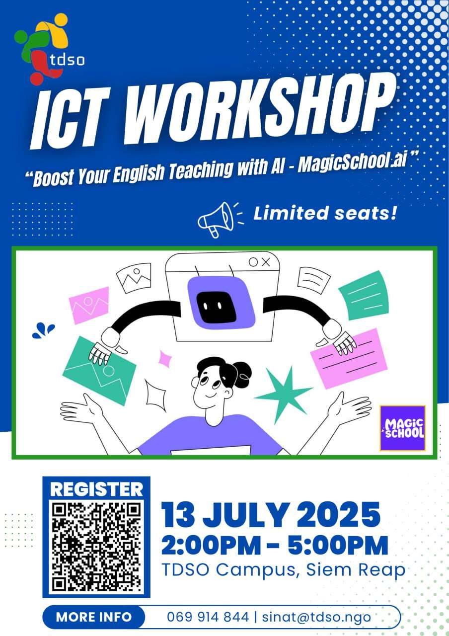 Are you ready to make your classroom preparation faster and smarter? Join us for an interactive workshop led by Mr. Kan Sokhit, where you’ll be introduced to MagicSchool.ai, a powerful AI platform designed specifically for teachers. Learn how to use its tools to create lesson plans, quizzes, rubrics, and simplified texts in just minutes!  Date: Sunday, 13 July 2025 Time: 2:00