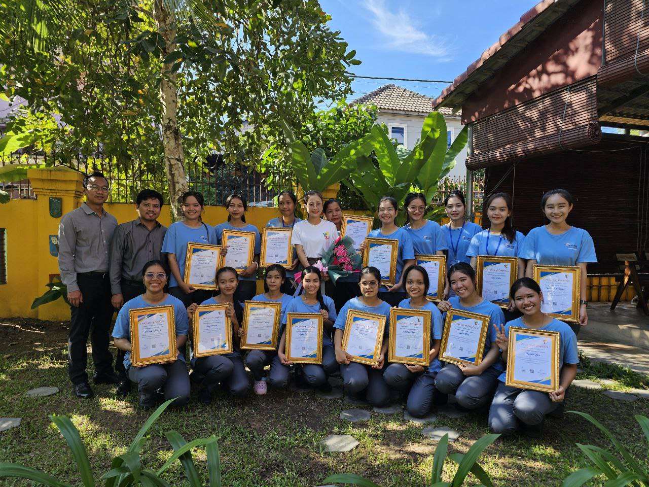 On December 14, 2023, the Director of the English for Partner Organizations (EPO) Program and his distinguished team were cordially invited to grace the graduation ceremony at the École du Bayon Bayon Pastry School Coffee Shop for 20 students who had successfully completed the 6-month English course offered by TDSO – Teacher Development Support Organization. TDSO is proud to have been