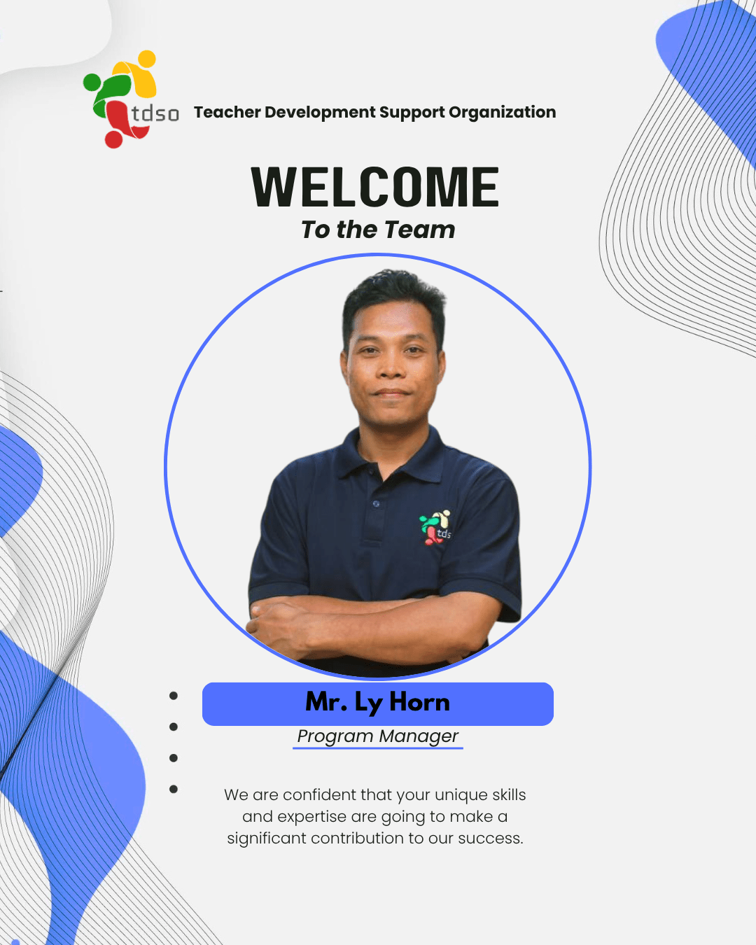 Welcome to TDSO, Mr. Ly Horn! We are delighted to welcome Mr. Ly Horn as our new Program Manager – English Teacher Training for Technical and Vocational Education and Training (TVET). In this role, Mr. Ly Horn will be leading our efforts to strengthen English teaching within Cambodia’s TVET system.  Key responsibilities include:• Designing, coordinating, and implementing capacity-building programmes for English teachers
